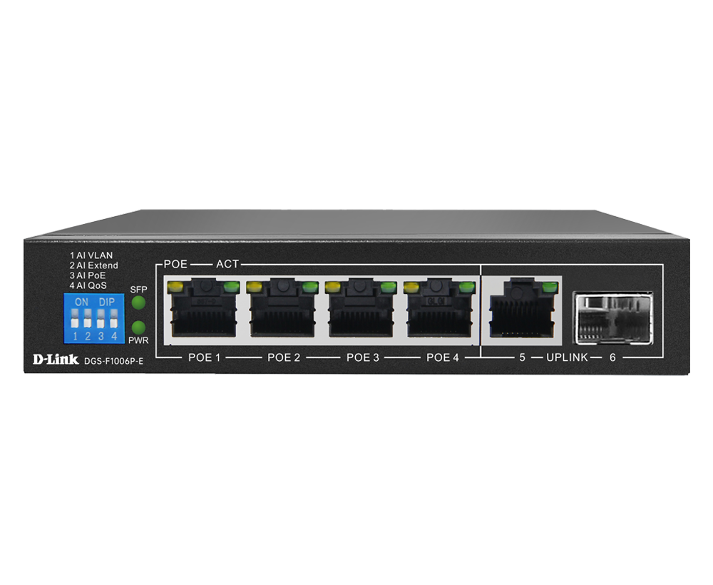 D-Link DGS-F1006P-E 6-Port Gigabit PoE Unmanaged Desktop Switch